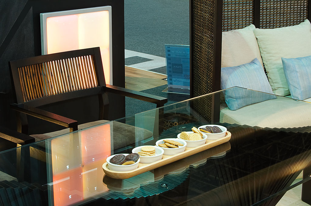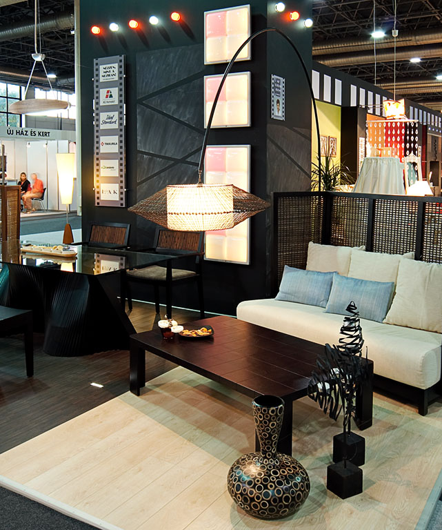 A szépemlékű Bútorvilág LifeStyle Kiállításon bebizonyítottuk, hogy nem feltétlenül a ?fal teszi a szobát?. A különböző funkciójú tereket csak jelzés-szerűen határoltuk el egymástól, ezek így együtt mégis gyönyörű egységet alkottak. Enteriőrönként mindössze 10,5 négyzetméternyi falfelület és ugyanekkora padló is elég volt ahhoz, hogy ízelítőt adjunk a luxusból, megmutassuk, hogy van a kereskedelemnek olyan szegmense, amely magas minőségű termékeivel a legkényesebb ízlésű emberek igényeit is kielégíti. A szépséges tárgyakból, világító testekből, bútorokból, burkolatokból már-már éteri finomságú enteriőröket alkottunk. A világító parkettától a fehérarany üvegmozaikig, a fényterápiás zuhanytól a poénos, iparművész-készítette bőrkutyákig sok-sok különlegességet tervezhettünk be.